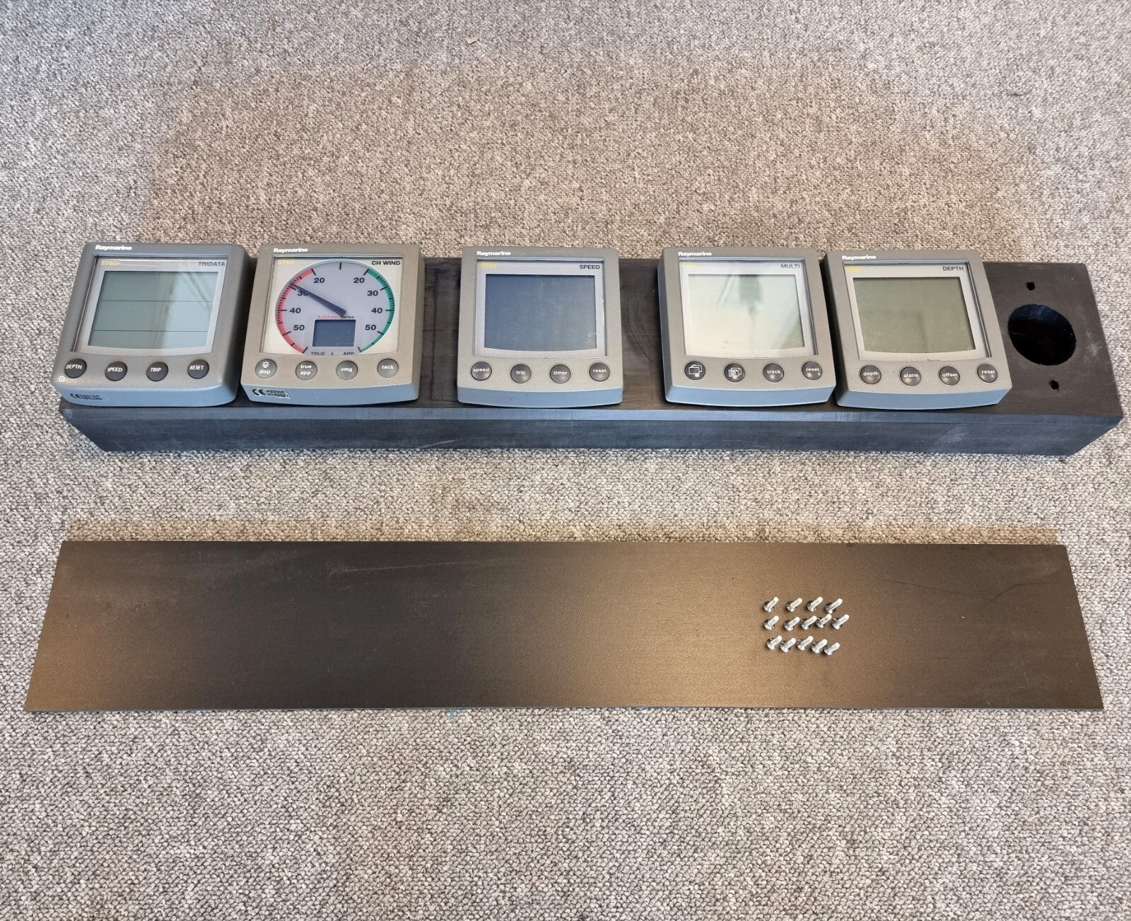 This Navpod fits 6 instruments. 5 Raymarine / Raytheon ST60 or ST60+ / Autohelm ST80 Instruments (Wind, CH WIND, Speed, Depth, Autopilot control unit, Masterview, Maxiview, Multiview Compass, Rudder indicator etc) and 1 Remote Control.