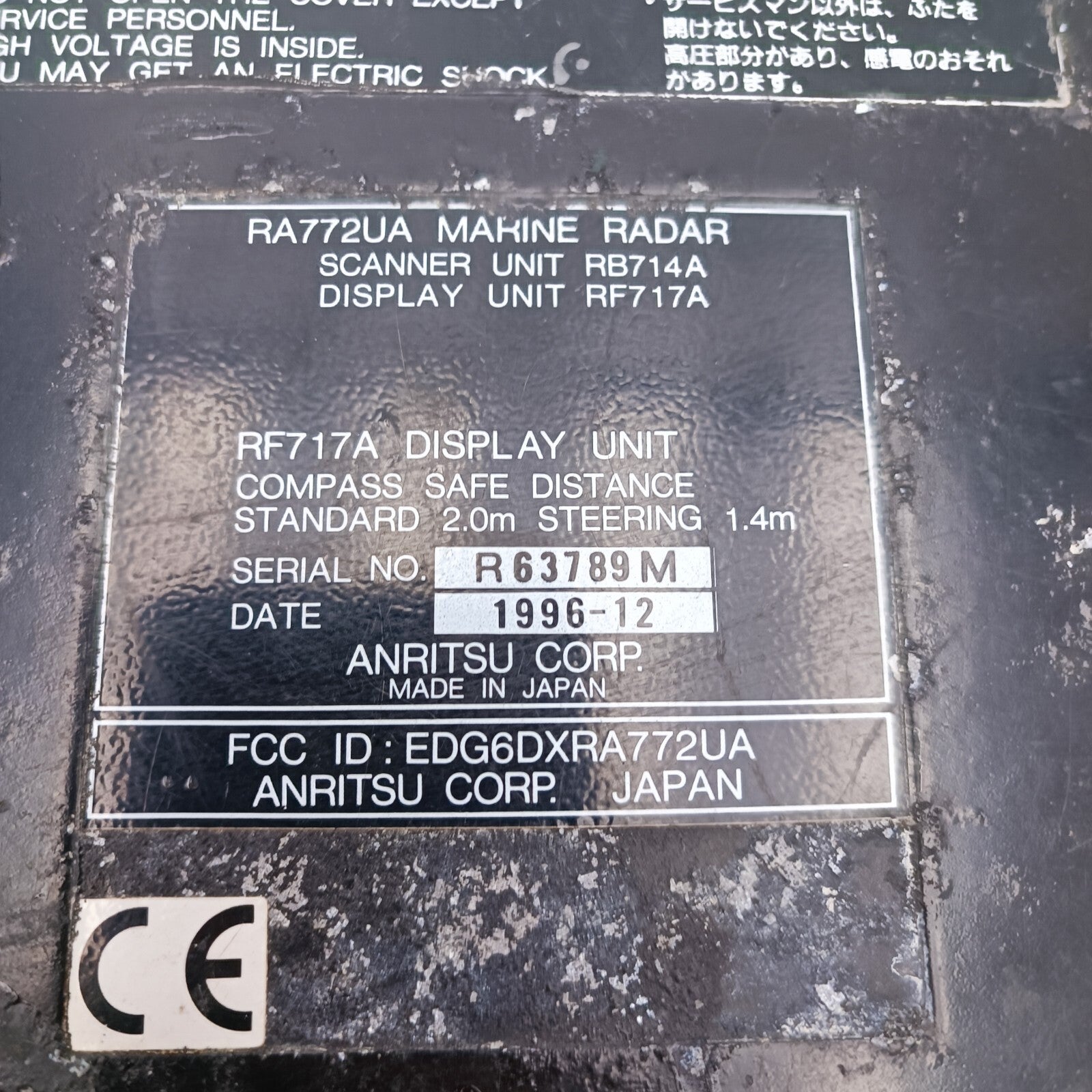 SIMRAD Anritsu RA772UA MARINE RADAR RF717A f/ RB714A DISPLAY UNIT