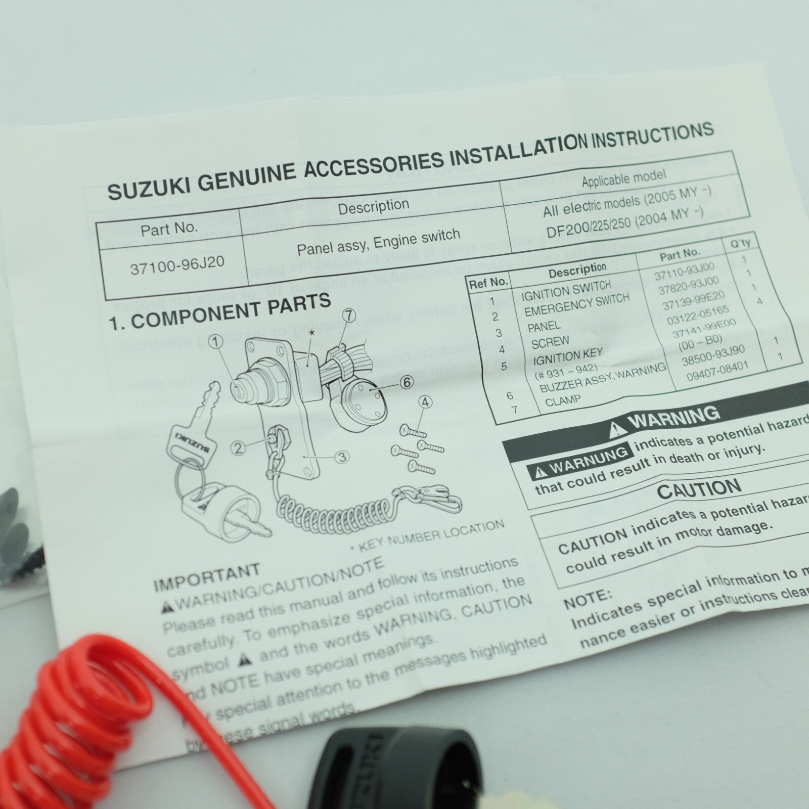 Suzuki Outboard 30HP DF 30TSK2 Beginning VIN# 03001F-251001 Opt:Switch (Model:05%07)