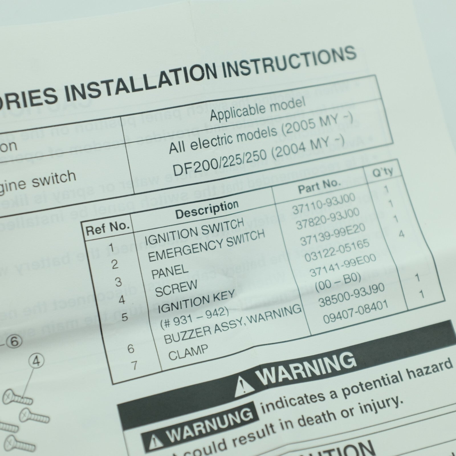 Suzuki Outboard 30HP DF 30TSK4 Beginning VIN# 03001F-421001 Opt:Switch (Model:05%07)