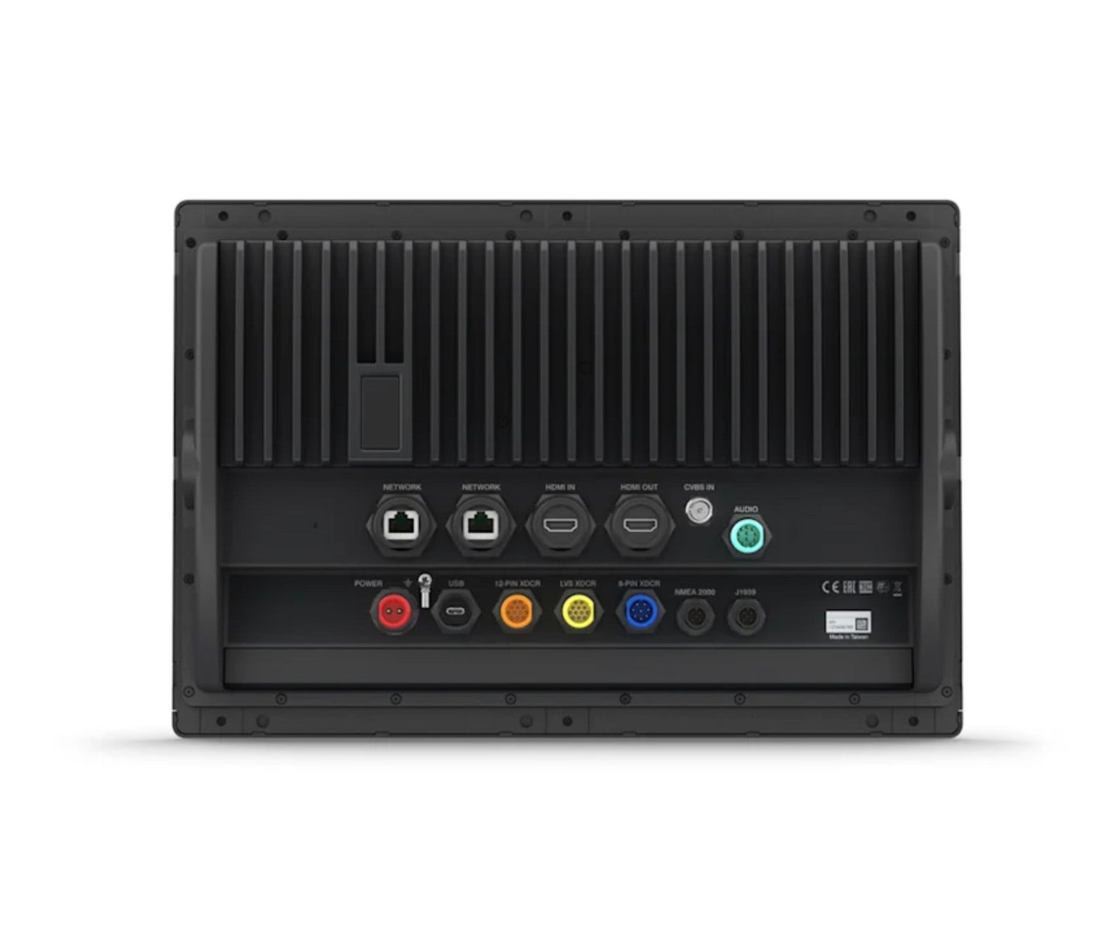 Ports: NMEA 0183, video input/output, HDMI, sonar transducer connectors (12-pin, 8-pin, LVS).