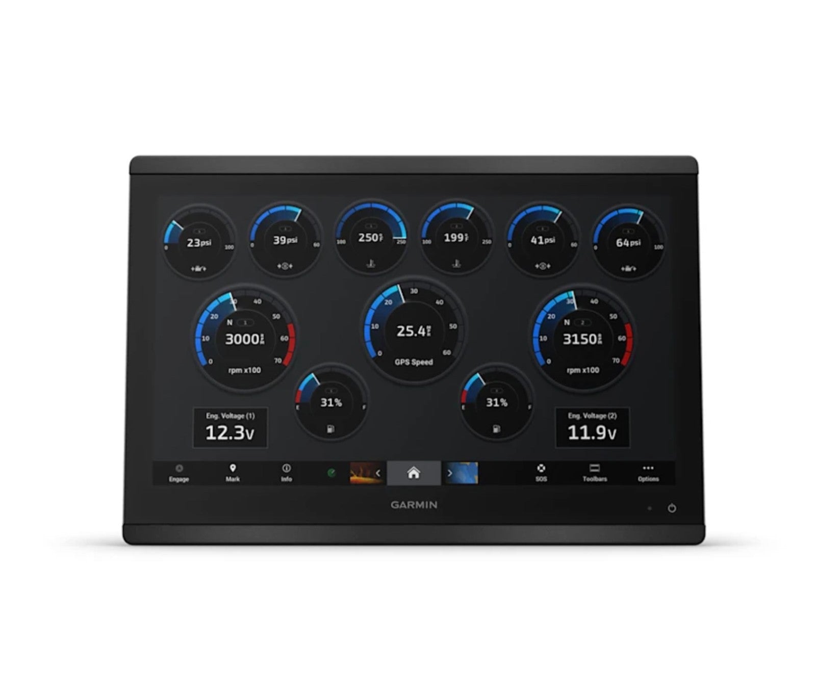 Dual Garmin Marine Network ports and NMEA 2000 support for radar, AIS, autopilot, and sensors.