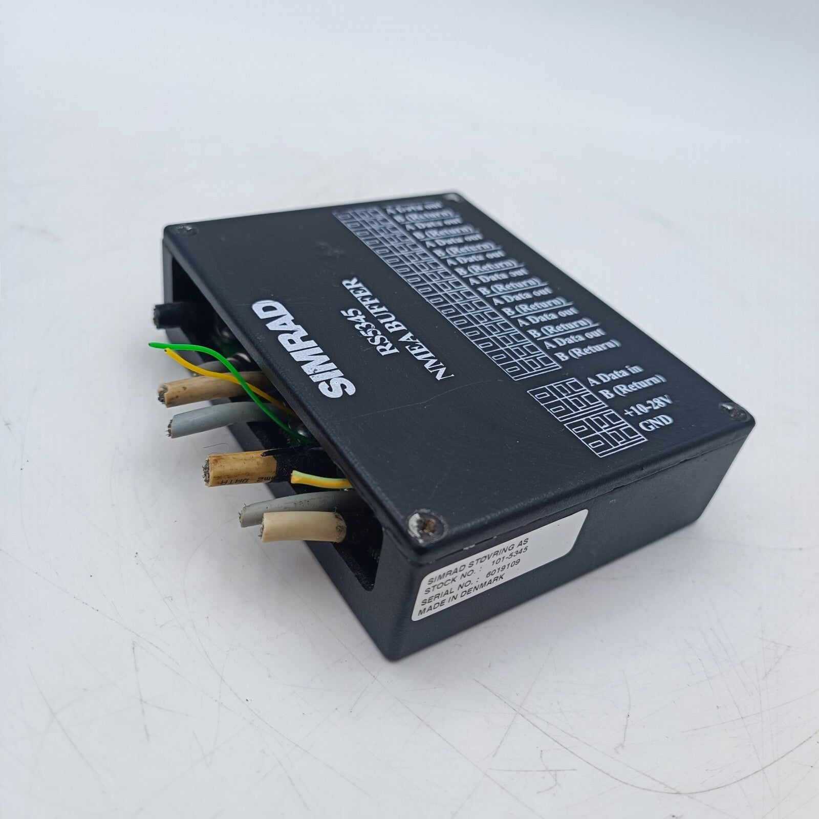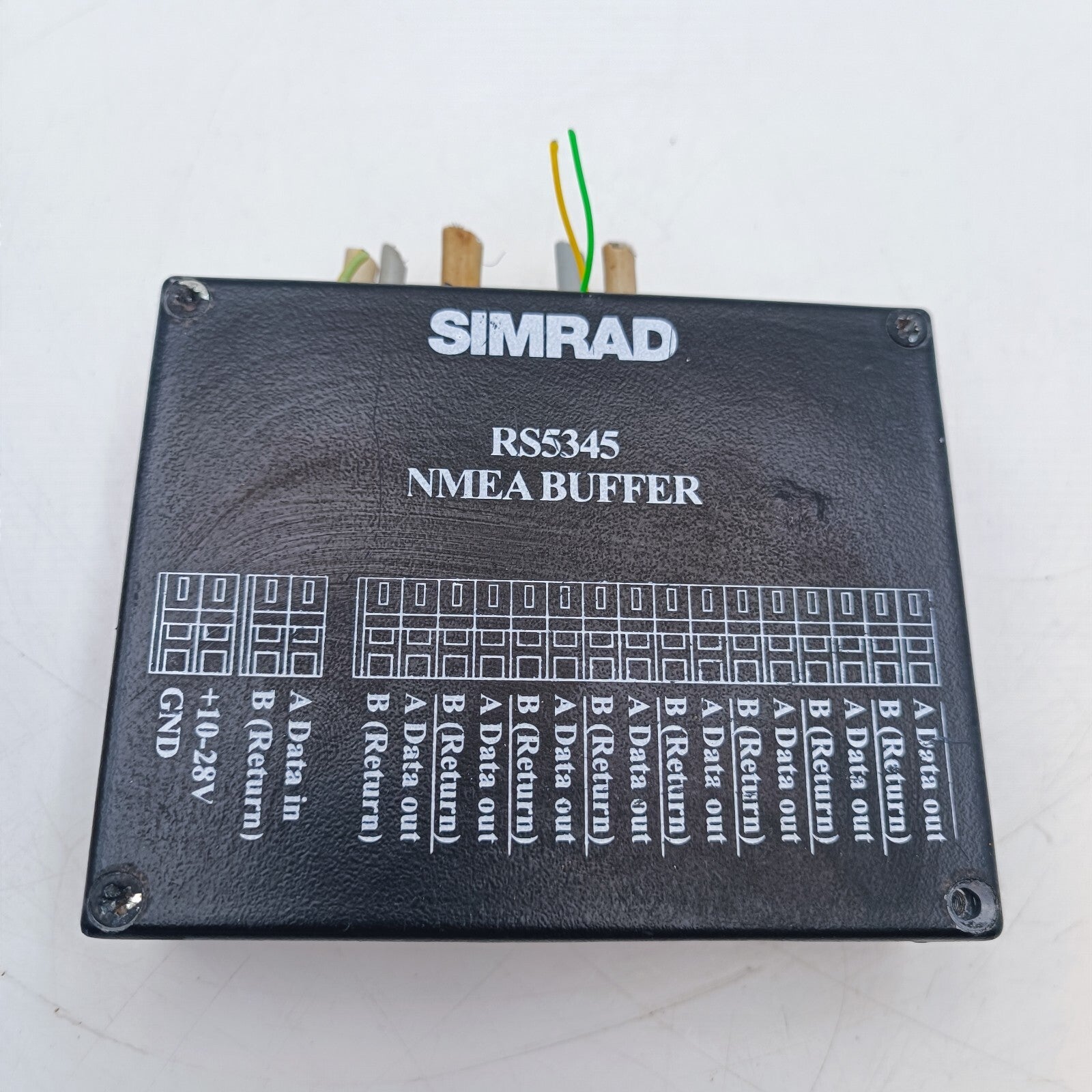 This NMEA BUFFER is SIMRAD RS-5345. The RS5345 is designed for the multiplication of NMEA 0183 signals, version 1-3 (IEC 61162-1, 61162-2) or other serial data transmissions via RS-232 and RS-422/485 interfaces from one or two sources. The unit provides a checksum test for data received on the first channel.
