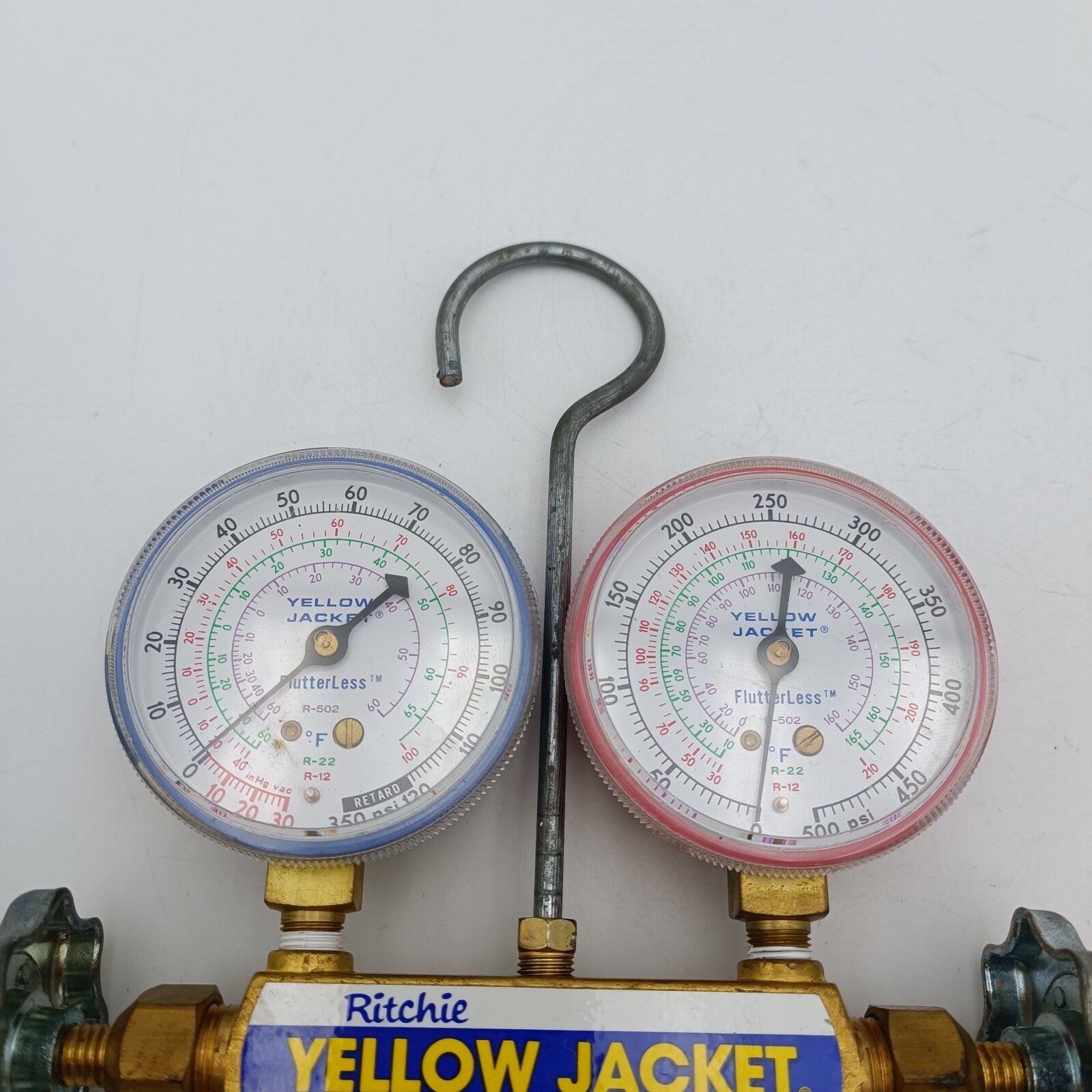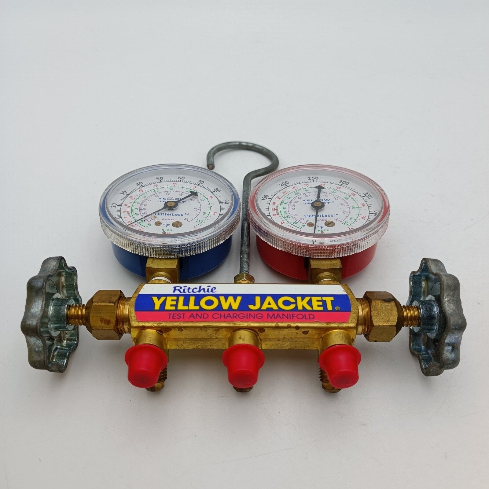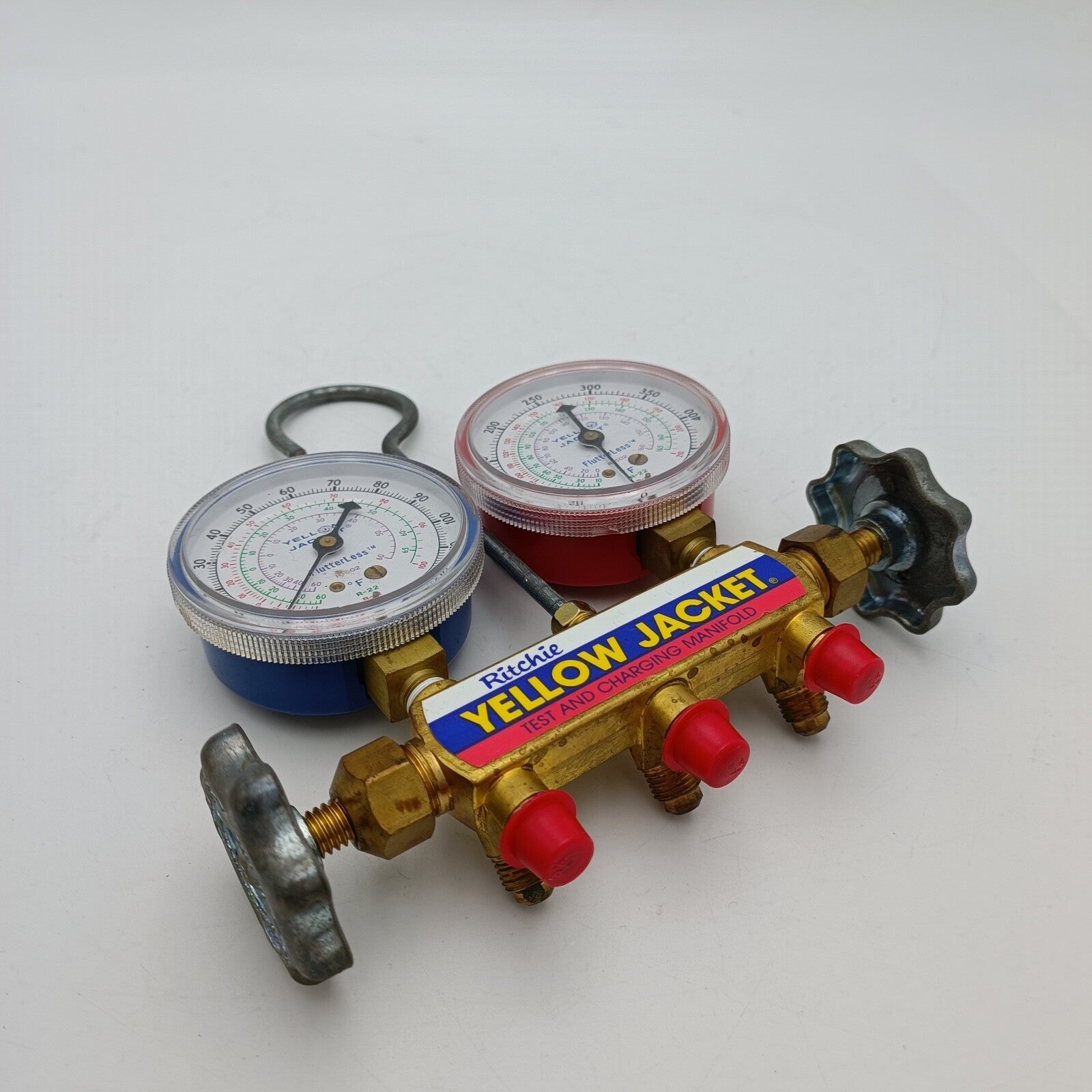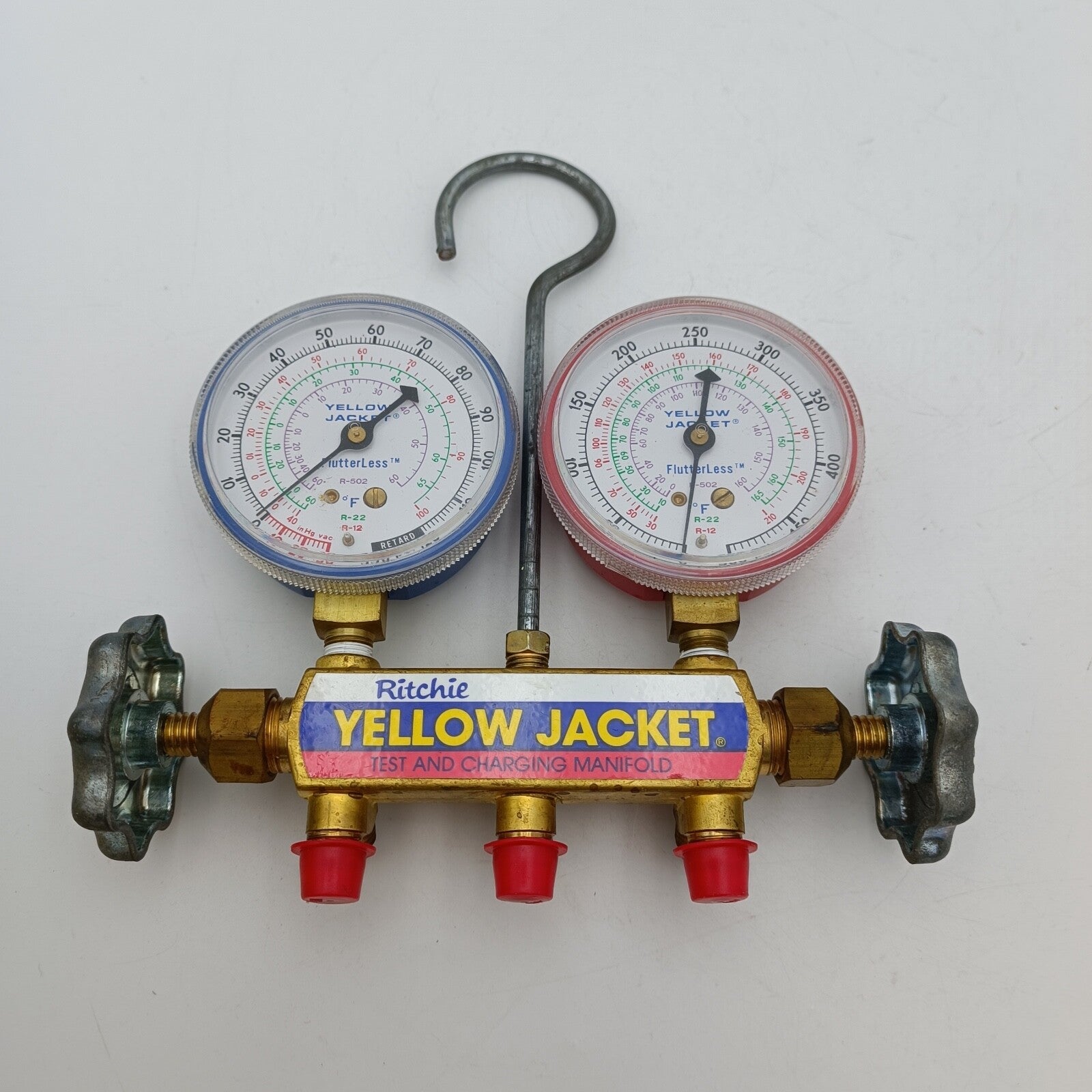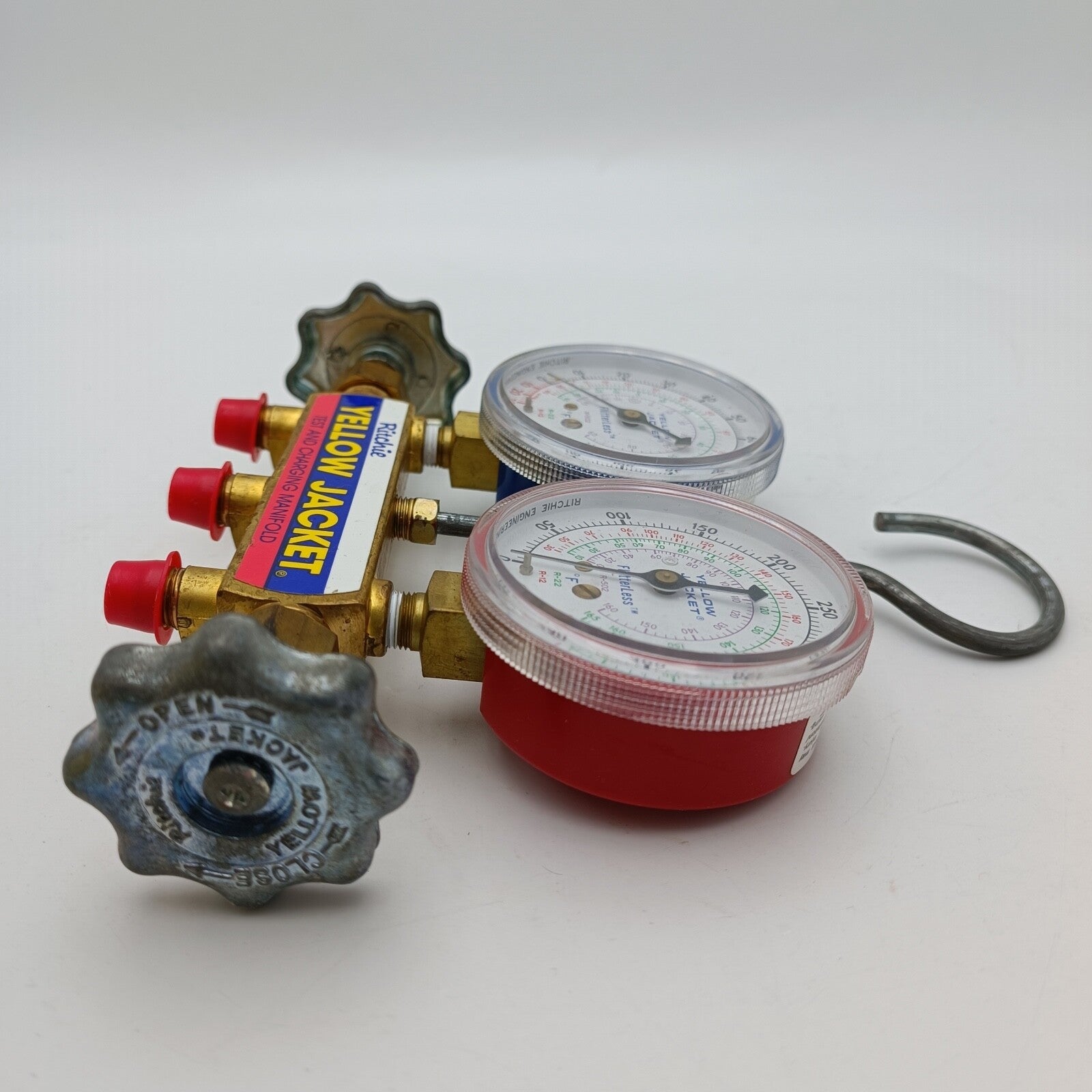 Yellow Jacket Ritchie 41213 Titan 2-Valve Test and Charging Manifold - Red / Blue Gauges with HA-36RYB Hose in an original box.