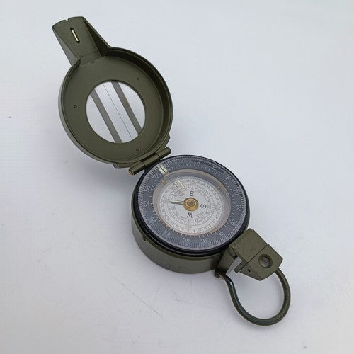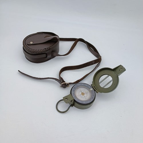 Presenting an exceptional Francis Barker M-88 military prismatic marching compass, immaculately preserved in its original box. Crafted in Britain, these compasses represent the pinnacle of quality and reliability, serving as standard issue equipment for the UK Armed Forces during deployments in Iraq and Afghanistan.
