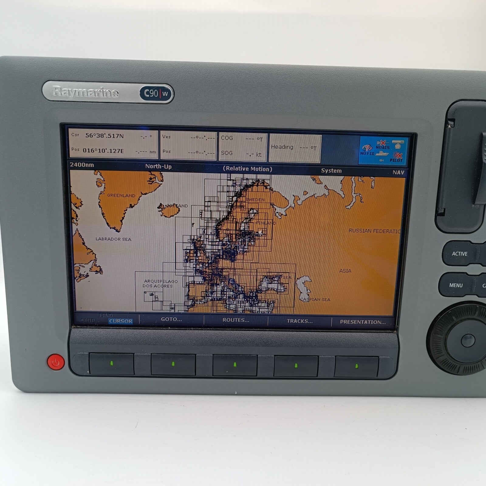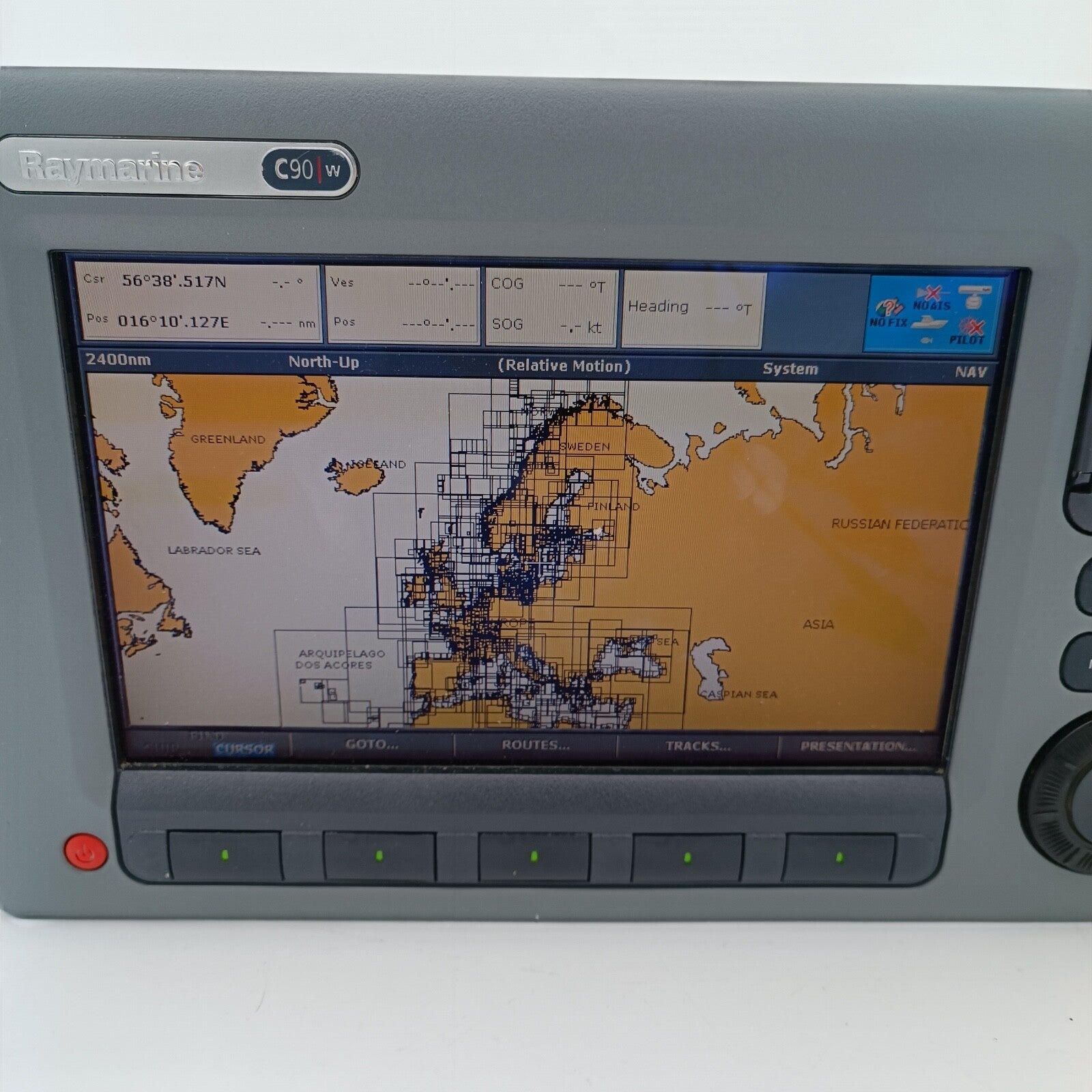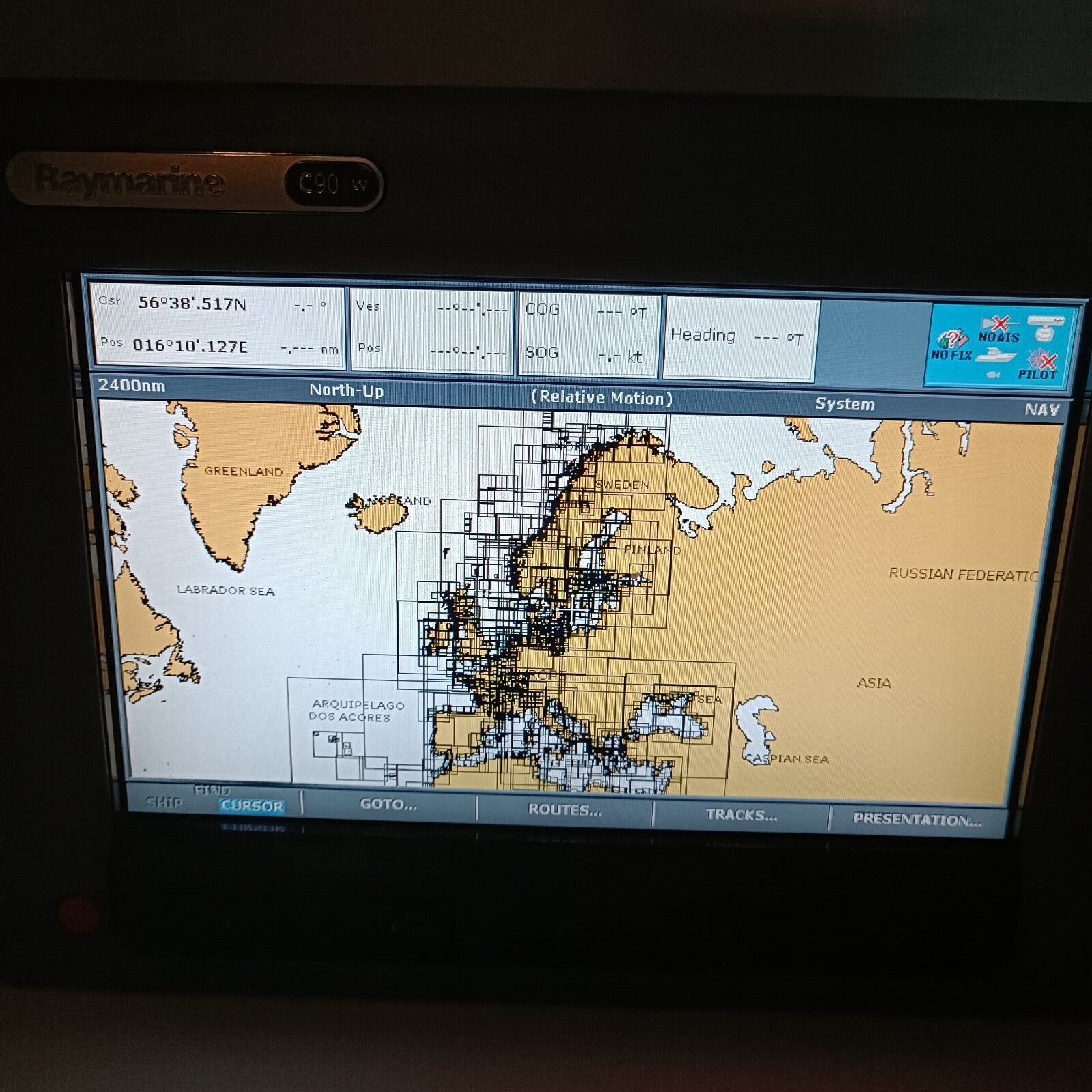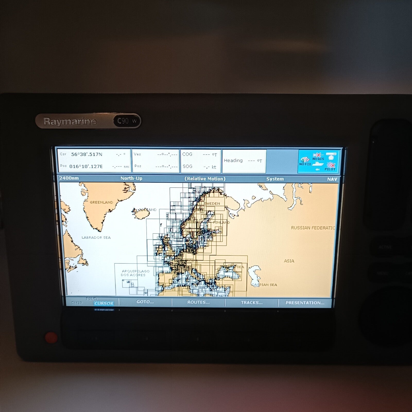 With Navionics charts iover all Europe installed on the unit.