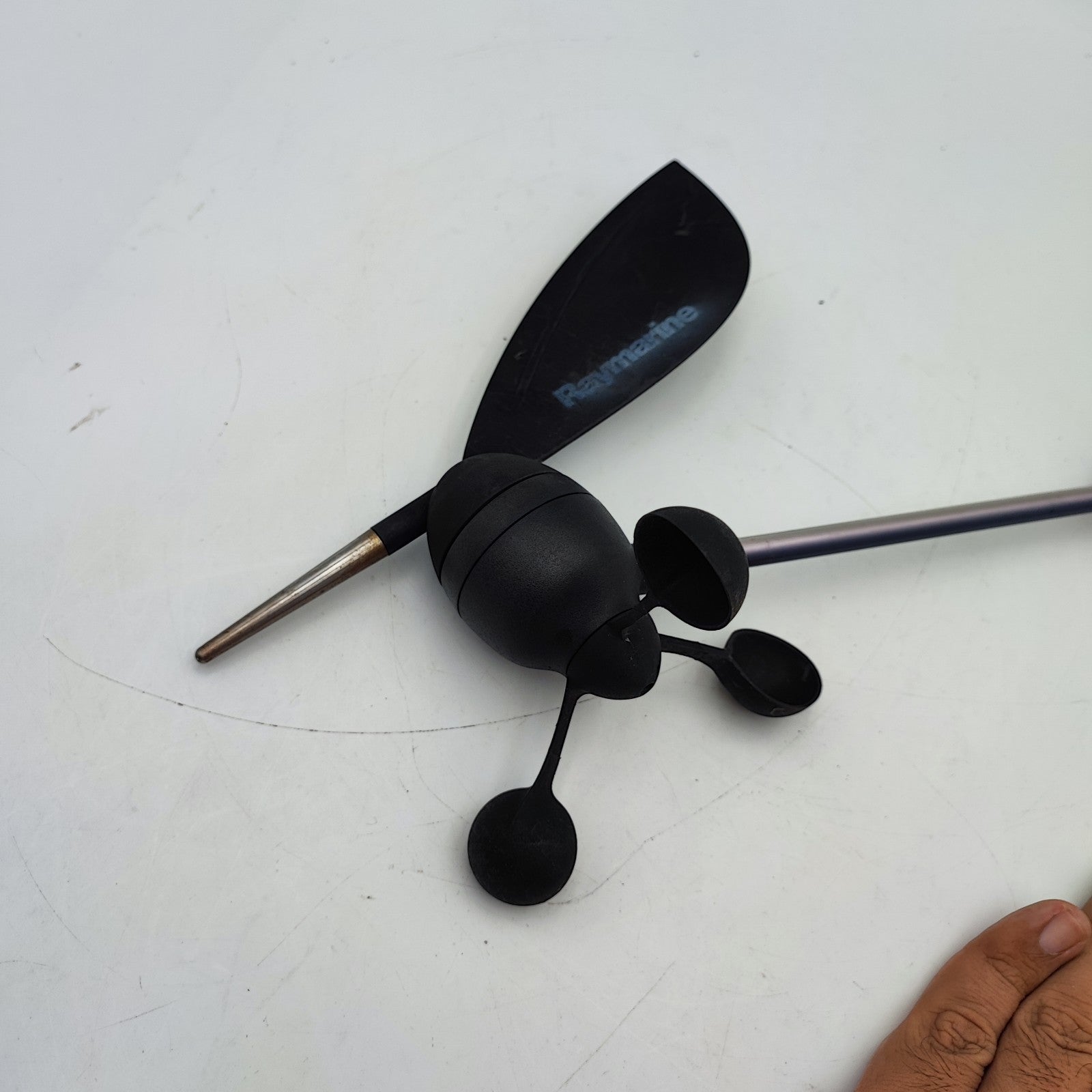Raymarine's wind sensor provides reliable and accurate data on wind direction and speed. The wind sensor has a short arm.