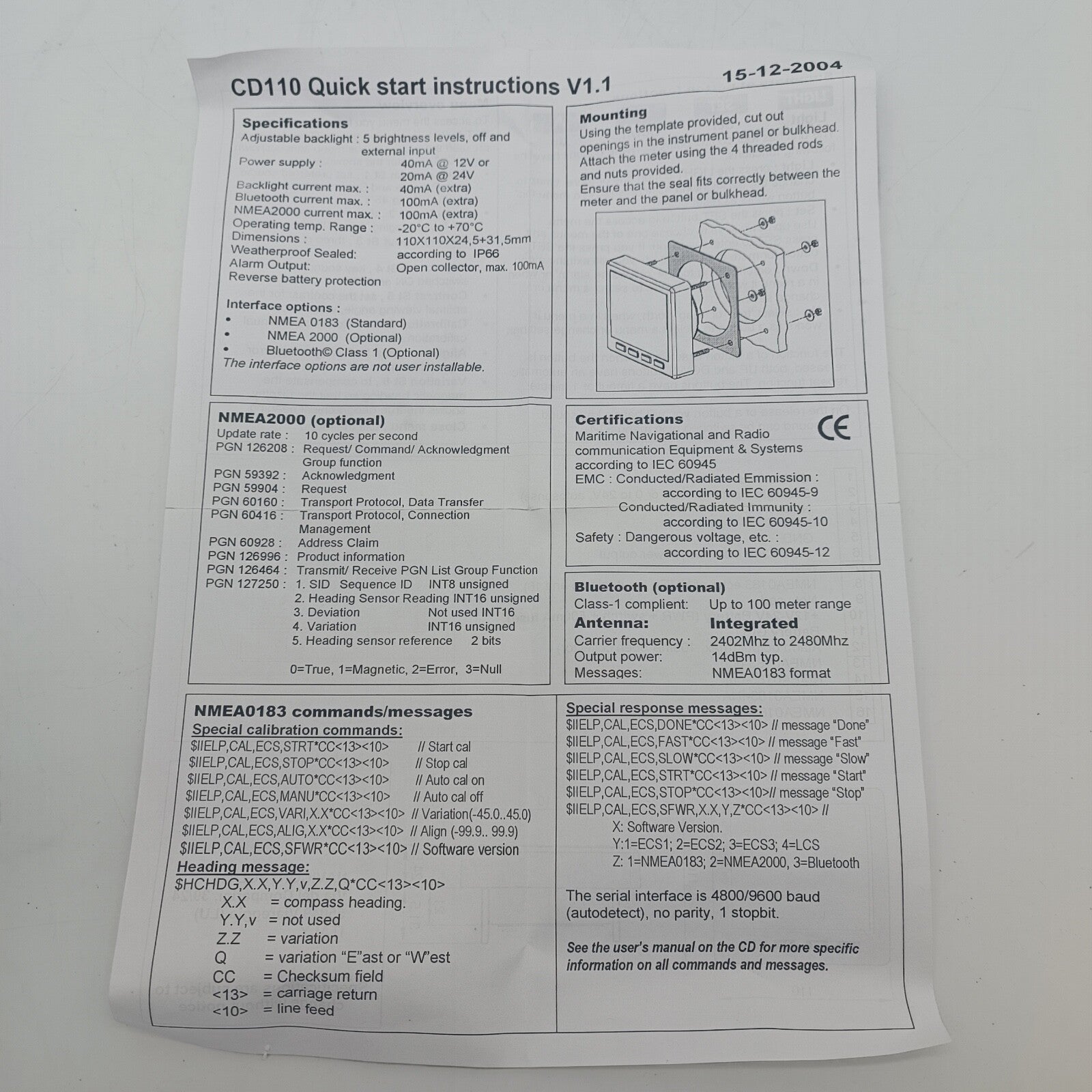Navicontrol Compass Indicator CD110 NMEA0183 Brand New