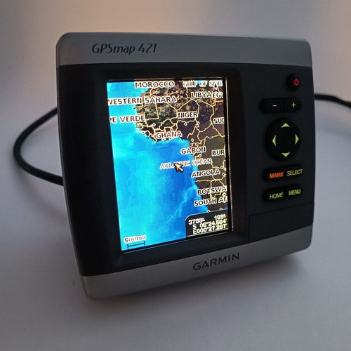 The GPSMAP 421 is a sleek, space-saving chartplotter that features an ultra-bright 4” QVGA display; built-in, satellite-enhanced worldwide basemap and simplified user operation. The 421 also has an SD™ card slot so you can add additional features with the optional BlueChart® g2 Vision card.