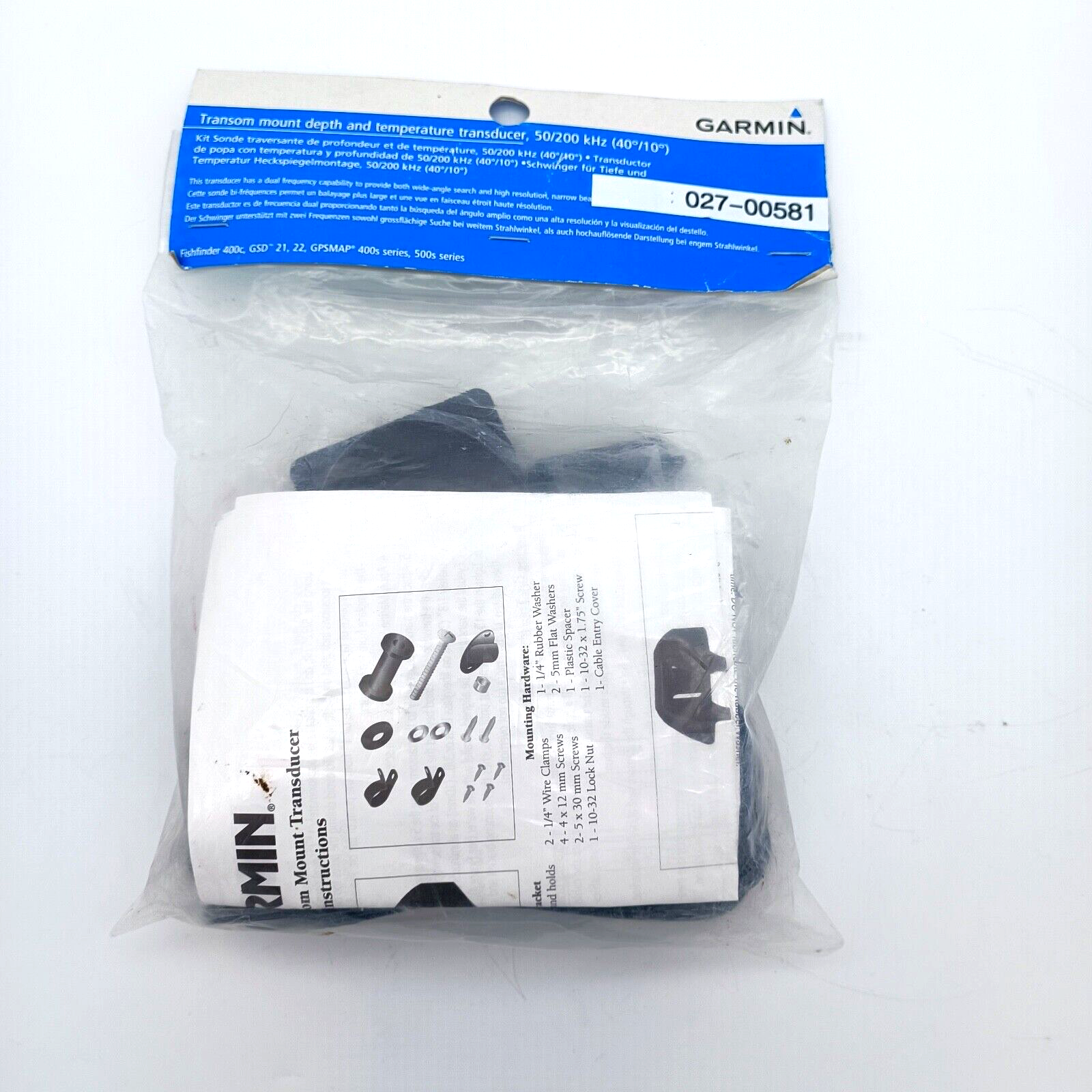 GARMIN TRANSOM MOUNT DEPTH AND TEMPERATURE TRANSDUCER 50/200KHZ