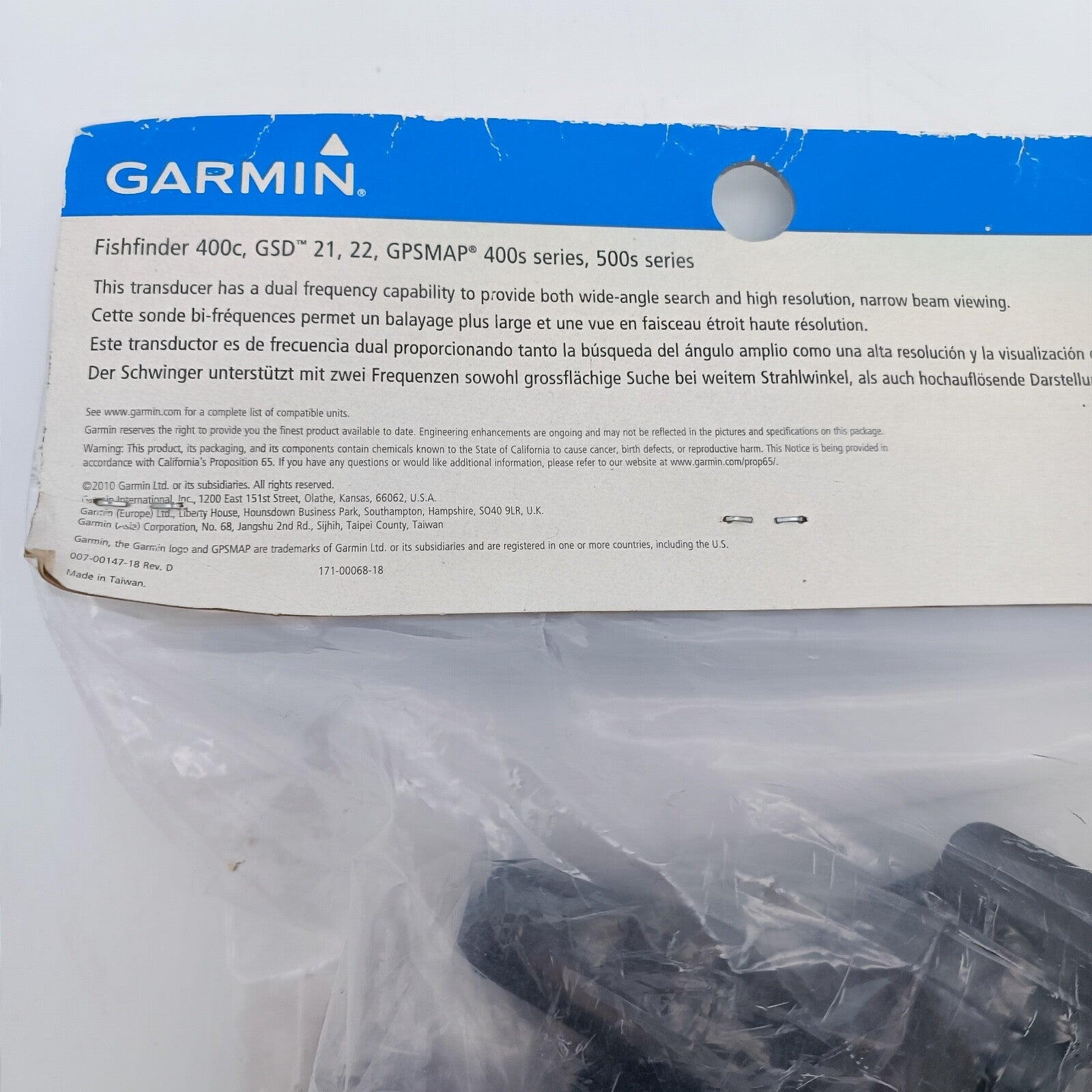 Brand new Garmin transducer in original packaging.