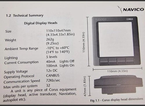 NAVICO CORUS C300S Active Display Main Unit Instrument WIND w/Cover