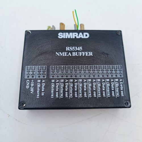 This NMEA BUFFER is SIMRAD RS-5345. The RS5345 is designed for the multiplication of NMEA 0183 signals, version 1-3 (IEC 61162-1, 61162-2) or other serial data transmissions via RS-232 and RS-422/485 interfaces from one or two sources. The unit provides a checksum test for data received on the first channel.