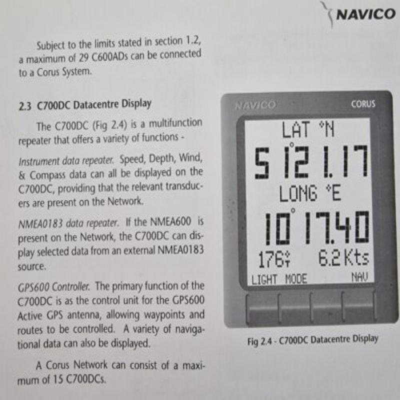 NAVICO CORUS C700DC Datacentre Display multifunction repeater – SPEED DEPTH WIND COMPASS